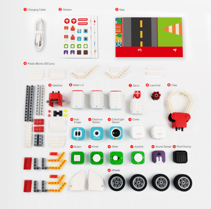 Модульные электронные блоки: Наборы состоят из магнитных блоков с различными функциями — светодиоды, датчики движения, температуры, звука, кнопки, моторы и другие элементы. Модули легко соединяются друг с другом благодаря магнитам.