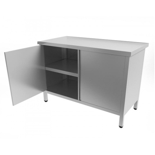 Островные столы-тумбы без борта с распашными дверками — надежное и удобное решение для пищеблоков школ и детских садов, обеспечивающее комфортную рабочую поверхность и функциональное место для хранения.
